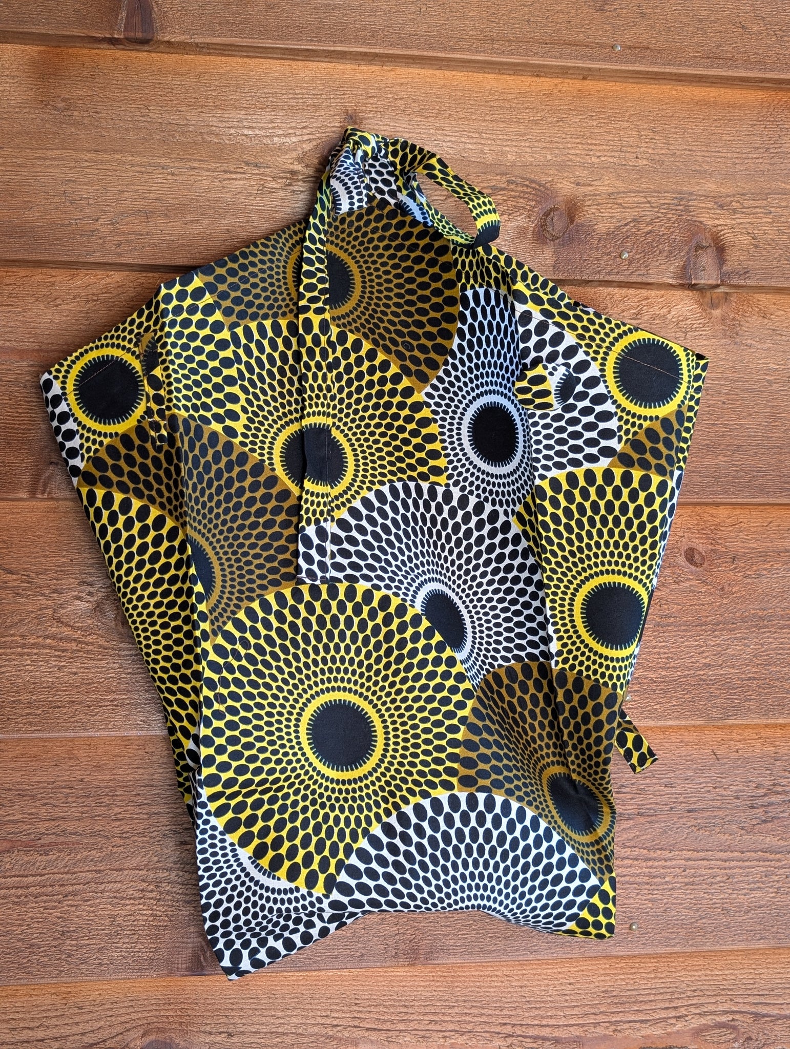 ウガンダからやって来たカラフルな布で、フラワーバッグを作りました。